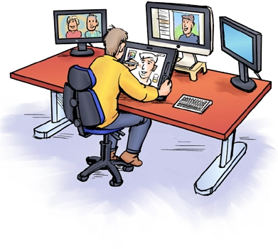De illustraties en karikaturen van Reinoud zijn origineel, vrolijk en pakkend. Digitaal, op papier of op canvas. In stijlvol zwart-wit of levendig kleur.