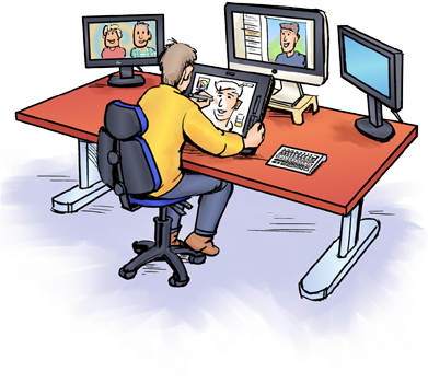 De illustraties en karikaturen van Reinoud zijn origineel, vrolijk en pakkend. Digitaal, op papier of op canvas. In stijlvol zwart-wit of levendig kleur.