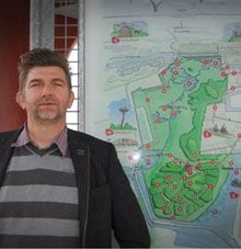 Zo mooi saai als het uitzicht is, zo afwisselend is mijn werk. Meestal teken ik thuis op mijn digitale tekenblad. In mijn tekenstudio teken ik karikaturen, visuals en illustraties. Soms werk ik op locatie. Dat is de ene keer in een Middeleeuws kostuum als sneltekenaar, de andere keer ben ik sessieschetser bij een brainstormdag van een IT-bedrijf en weer een andere keer visualizer bij een communicatiebureau.Ook geef ik les. Eens per week in De Boschpoort in Winschoten en op verzoek verzorg ik workshops bij bedrijven. Ik werk samen met mijn vrouw Loes. Zij maakt teksten: artikelen en advertenties, teksten voor websites en complete nieuwsbrieven, inclusief redactieplan. We vullen elkaar goed aan. Soms werken we samen, zoals met de artikelen die zij maakt voor vakblad Afval. Ik bedenk en teken de illustraties. Eigenlijk teken ik alles. Maar ik heb natuurlijk mijn voorkeuren. Behalve mensen en dieren teken ik graag motoren en auto's - mijn grote passie. Ook visuals en illustraties, hierop studeerde ik af, zijn nog altijd een grote uitdaging. De onderwerpen lopen enorm uiteen en de tekeningen moeten meestal snel klaar zijn.